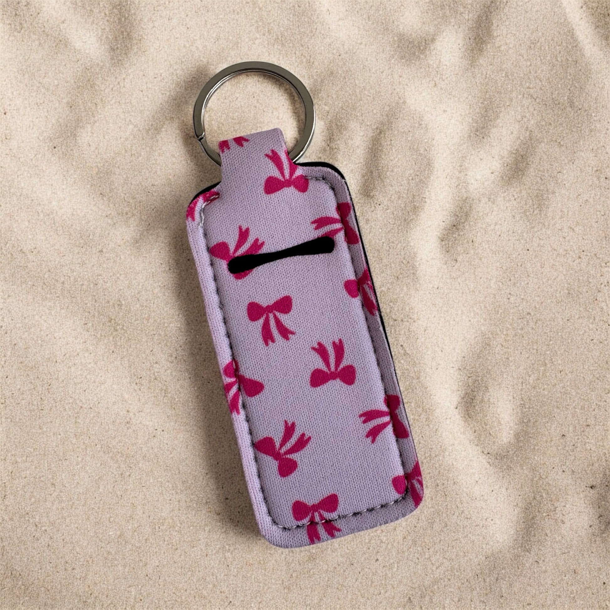 These fabric lip balm keychains feature a playful pink-and-white bow and cherry pattern that’s equal parts fun and functional. Designed to hold your favorite Smooch lip balm, they easily clip onto keys, bags, backpacks, or pouches so soft lips are always within reach.