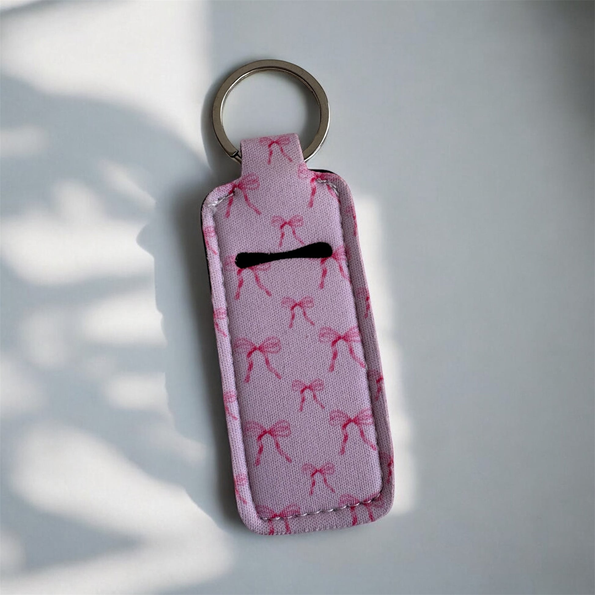 These fabric lip balm keychains feature a playful pink-and-white bow and cherry pattern that’s equal parts fun and functional. Designed to hold your favorite Smooch lip balm, they easily clip onto keys, bags, backpacks, or pouches so soft lips are always within reach.